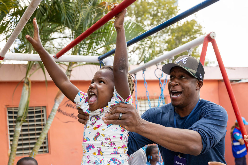 When professional athletes visit Compassion centers around the world, they trade the screams of fans for the joyful shouts of children. And in the process, they find a new kind of victory: hope for children living in poverty. Recently in the Dominican Republic, kids in Compassion’s program stepped up to the plate in a baseball game against pro football players. Punter Bradley Pinion and head coach Raheem Morris joined in the fun, but the experience went deeper than friendly competition.